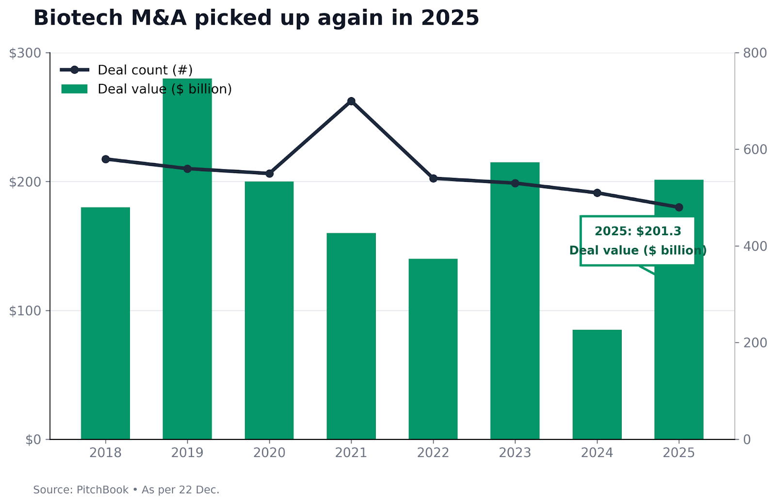 The pharmaceutical sector enters 2026 with major patent expiries, a shift from scarcity to scale in obesity drugs, stricter government price controls and a sharp rise in M&A. The GLP-1 obesity drug market is shifting from unconstrained growth to a competitive industry with pricing pressures and the launch of oral formulations. At the same time, patent expirations are threatening around $170 billion in annual sales by 2032. This is forcing major pharma companies into aggressive acquisitions to fill looming revenue gaps.