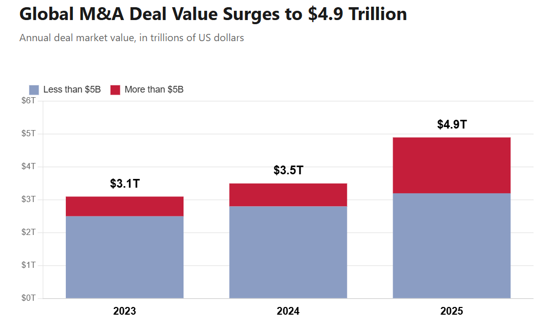 Mergers and acquisitions are one of the most powerful and most persistently used tools in corporate strategy. The rationale is straightforward: buy another business, unlock synergies, accelerate growth, and deliver returns to shareholders. In practice, the reality is far less clean. Yet deal activity shows little sign of slowing. According to Bain & Company, global M&A deal value reached $3.5 trillion in 2024, up 15% year-on-year and consistent with mid-2010s levels, while deal volume rose 7%, reversing two years of consecutive declines. In 2025, the market accelerated further still, with estimated deal value climbing 40% to $4.9 trillion, on track to become the second-highest year on record.