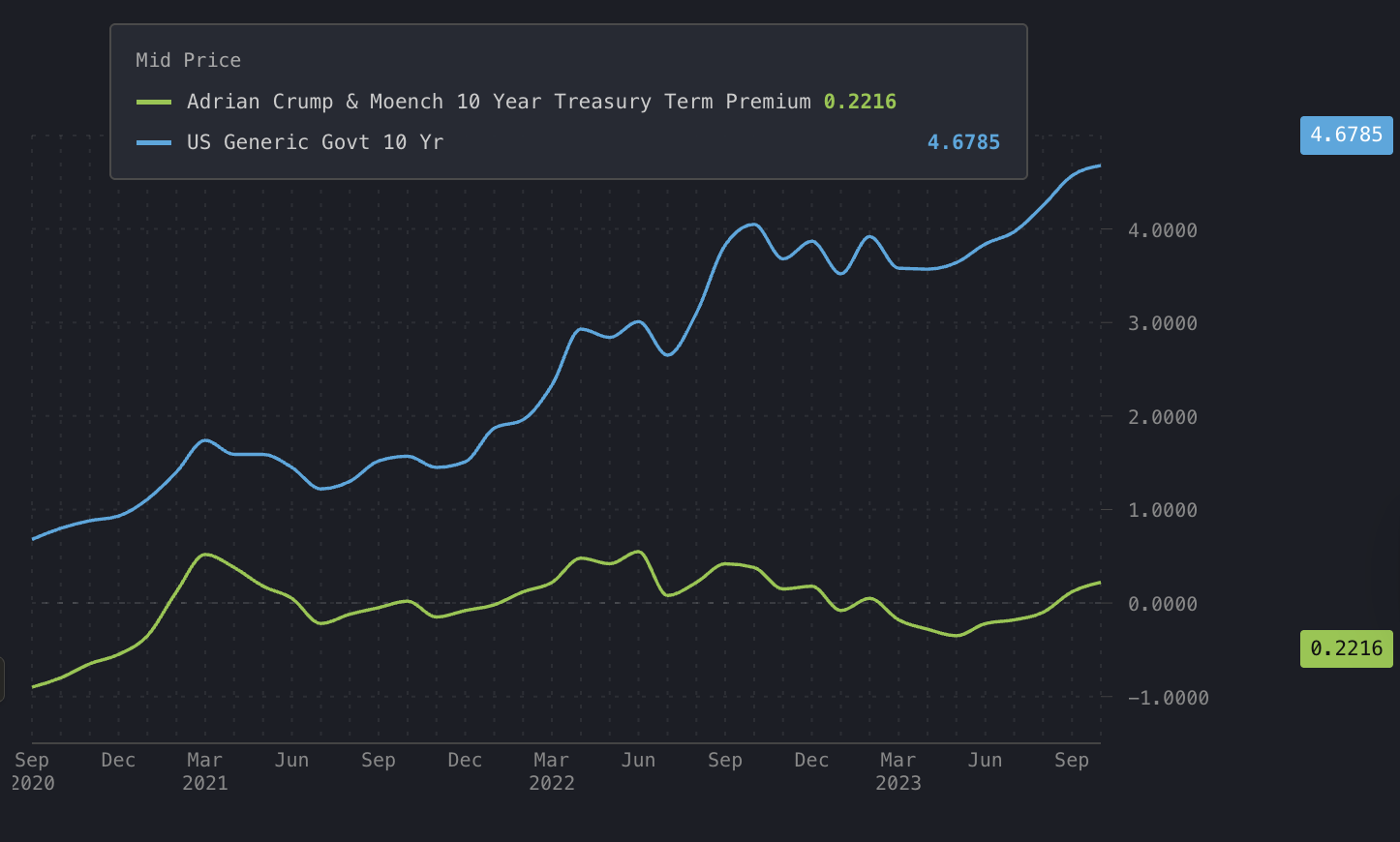 In August 2023, there was a moment following the US Treasury’s auctioning of $23 billion worth of 30-year bonds, triggering an immediate jump in yield, fuelling speculation that the market could accommodate the auction. This premium term (also known as the ‘term premium’) may be quite unheard of for those new to the FICC landscape, but at first, it is a simple concept in fixed income terms explaining the pricing of duration risk. To clarify, this type of risk refers to the exposure that a bond holder faces when interest rates rise. This is because newly issued bonds will have higher yields, resulting in the price of previous bonds falling, due to lower rate of relative return. Owing to the years of the Federal Reserve’s dovish stance on monetary policy, such as extended Quantitative Easing, this term had seemingly vanished.