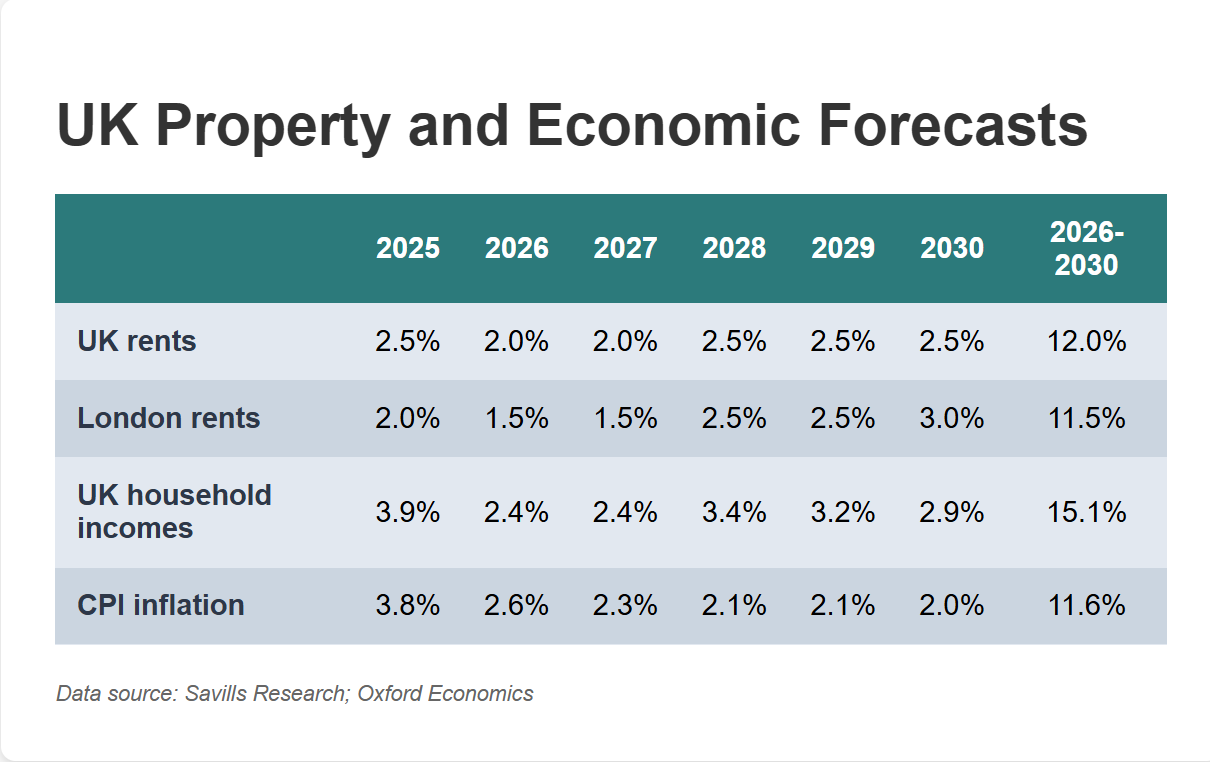 This is accompanied by a structural shift in the rental market, where smaller landlords are selling up to larger and more professional ones. This is expected to ramp up now that the Renters’ Rights Bill has become law, supported by lower rates and higher rents. Ultimately, tighter regulation and taxation will limit the growth of this sector, sustaining the problem of an undersupply in the private rented sector (PRS).